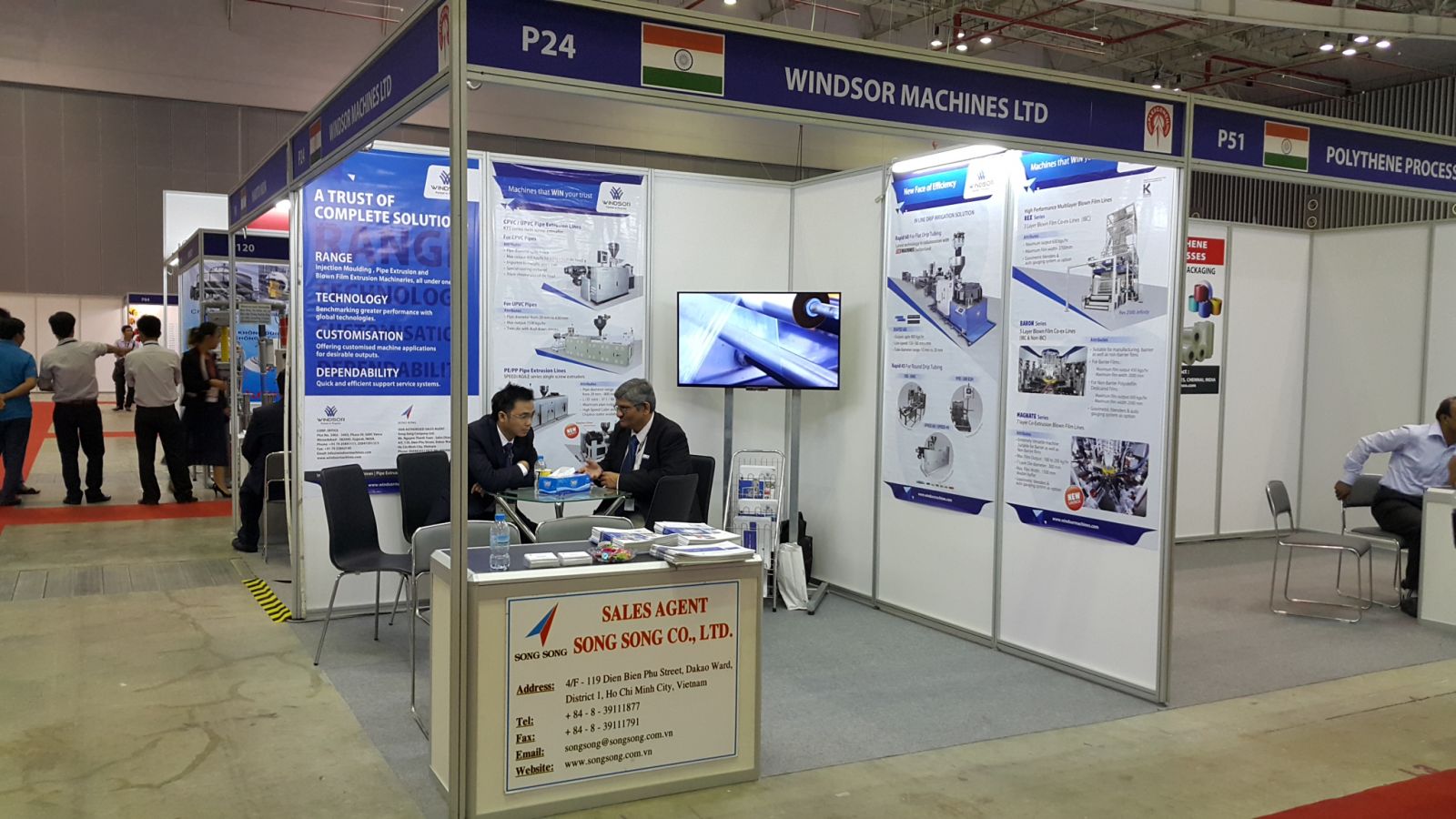 PLASTICS VIETNAM 2015 (23-25 July) Song Song team has joined our partner Windsor Machines Ltd, the world expert of turn-key line for pipe extrusion & blown film machines |